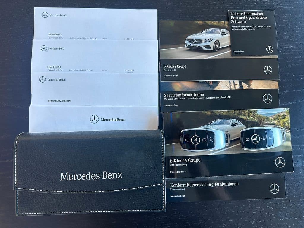Hier zeigen wir Ihnen unseren MERCEDES BENZ E400d COUPE . Das allseits beliebte Coupe aus dem Hause Mercedes verbindet Eleganz und Sportlichkeit mit Fahrspaß und Fahrkomfort. Das Fahrzeug befindet sich in einem TOP-Zustand, sowohl optisch als auch technisch, denn es ist Mercedes-Benz Scheckheftgepflegt. Wenn Sie ein sportliches COUPE suchen, ist dieses Fahrzeug genau das Richtige für Sie!